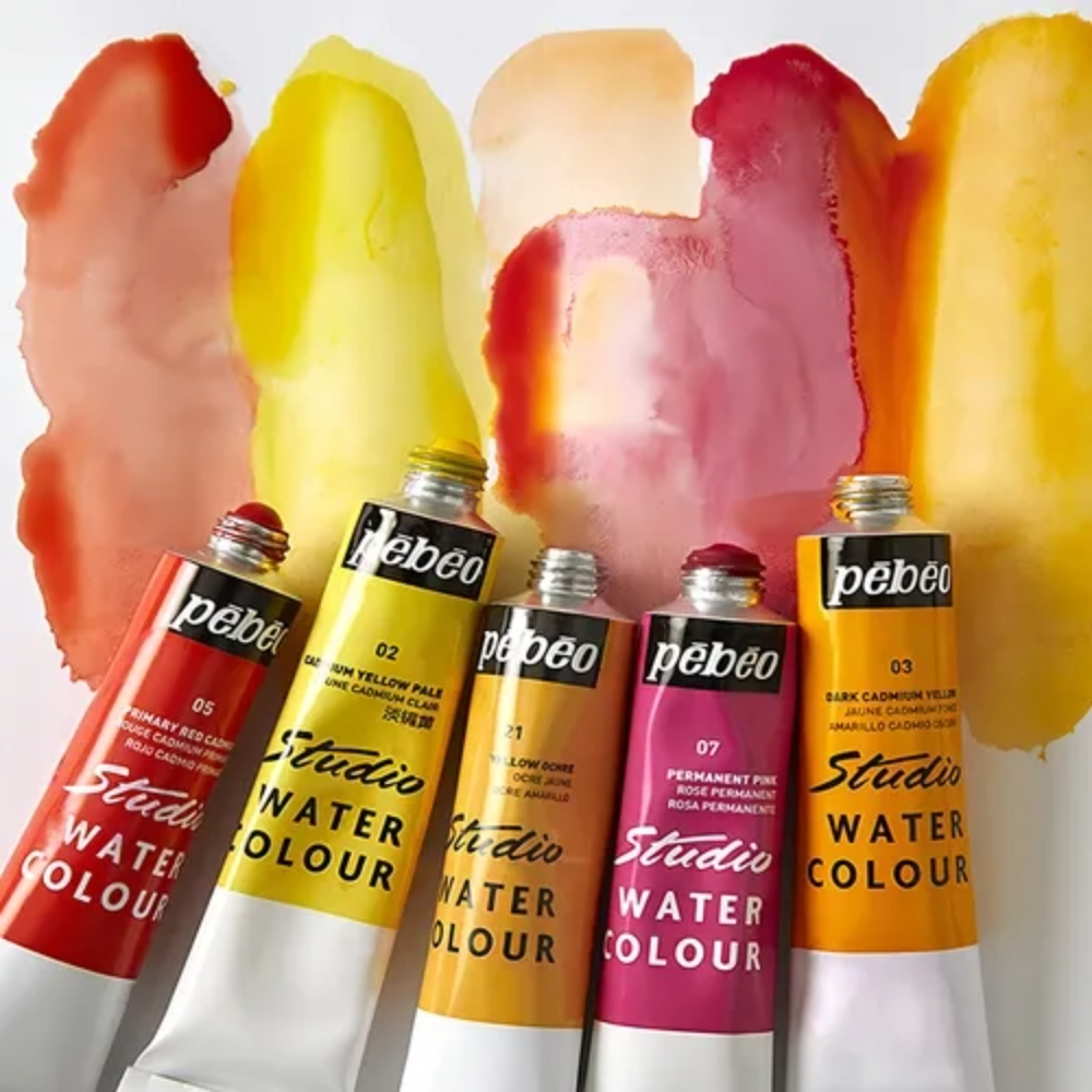 Los colores de las acuarelas Pebeo son muy fáciles de diluir, tienen una transparencia y profundidad de tono que no desaparece después de seco. La gama de colores especialmente seleccionada, está dirigida a responder las exigencias de los acuarelistas aficionados. Las acuarelas Pebeo secan en cuestión de horas dependiendo del soporte y la cantidad de agua utilizada.